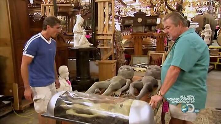 A seller brings in a snooker table he built for the Rolling Stones to use on tour, which an expert appraiser proclaims could sell at a sky-high price. A woman puts an amazing collection of rare African artifacts – including an elephant mask, two iron throne chairs, and a terracotta honey pot – up for auction, hoping for enough cash to renovate her kitchen. And Paul’s dad Bob decides to sell a family of alien props that he took as trade for a pool table. As the auction approaches, he hopes to find out he got the better end of the bargain!